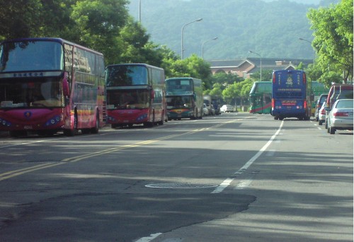 社區前停車位改為機車位需再研議,是劃給社區居民使用還是給飯店方便真的很難辦.龍埔國小9月快開學了,側門應該就在我們社區對面,學童面臨的是人行道的機車.馬路上的遊覽車和其排放的廢氣及每天來自不同地方的遊客.