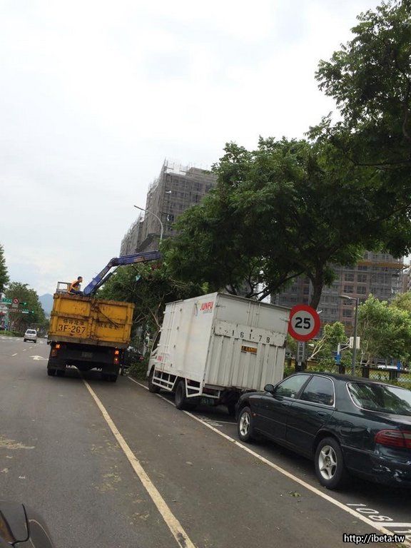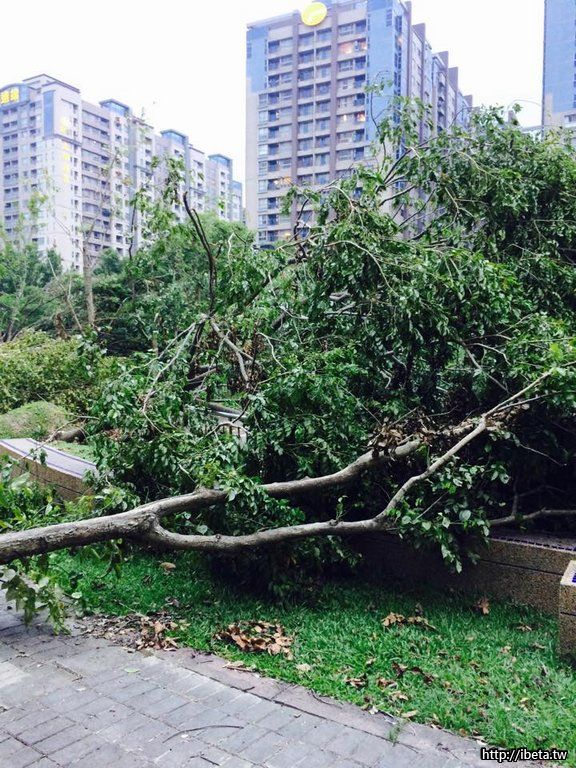 8/8 颱風造成北大很多行動樹倒楣,例如學勤路大學劍橋社區右側有兩棵樟樹已傾斜,是否盡快請區公 ...