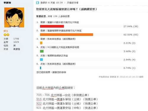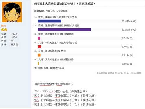 您需要北大直駛板橋快捷公車嗎?(請踴躍投票)
