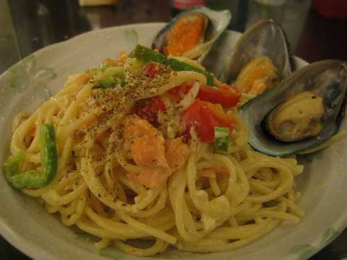 奶油醬鮭魚排: 鮭魚用牛奶浸泡15~20分鐘可有效去除腥味和軟化肉質,撒一點點言和黑胡椒煎熟取出,原鍋奶油炒軟洋蔥碎(也可加菇類)加入些許高湯和牛奶及北海道濃湯塊(也可用奶油炒香麵粉加高湯和牛奶做白醬)及些許鮮奶油及鹽調味淋在魚排上灑點黑胡椒即可,這是一道工續簡單但大人小孩皆宜的騙人菜:P