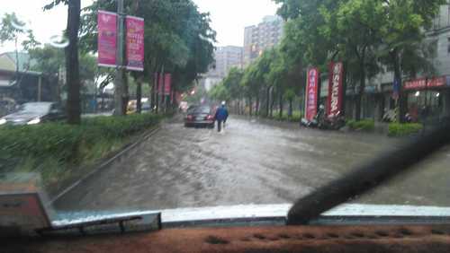 1個小時70mm的雨量是很大沒錯,但也只有一個小時而已,就淹半個輪胎高... 這樣的排水真的讓人很擔 ...