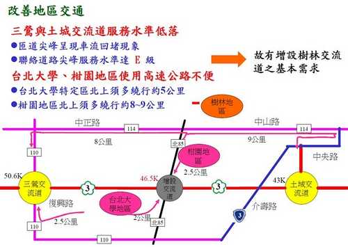 主旨:國道三號增設樹林交流道,建請採行「新闢聯絡道設置鑽石型交流道」型式之方案一次到位解決三鶯地區全體居民行的問題。