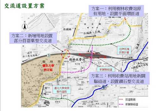 二、據稱國道三號增設樹林交流道可行性研究報告書,初步建議採苜蓿葉型交流道為規劃方向。本人家居北大特區,認為此規劃方案並不適當。