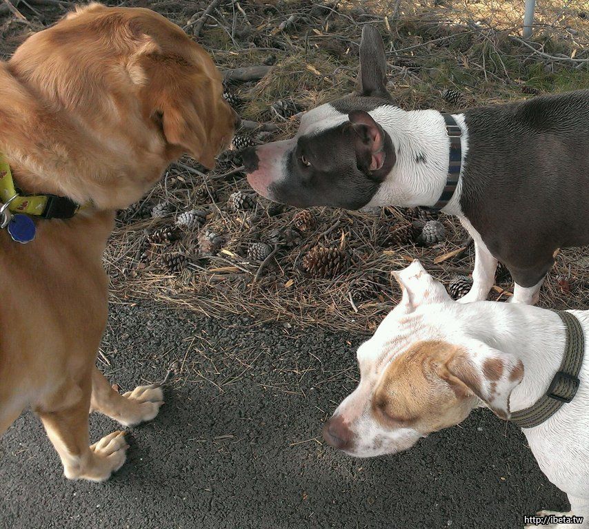 前兩天遛狗時遇到兩隻pitbull鬥牛犬,