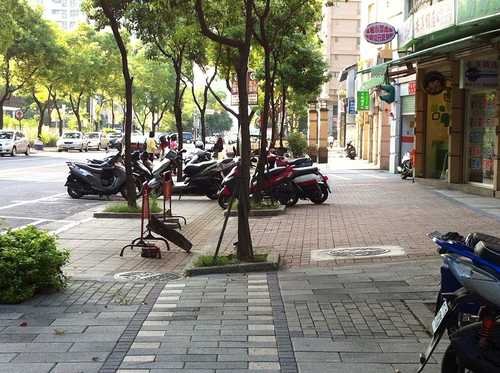 人行道,真的應該好好好設計一下了,利用些技巧性的景觀設計,來阻止車輛開上來停放......