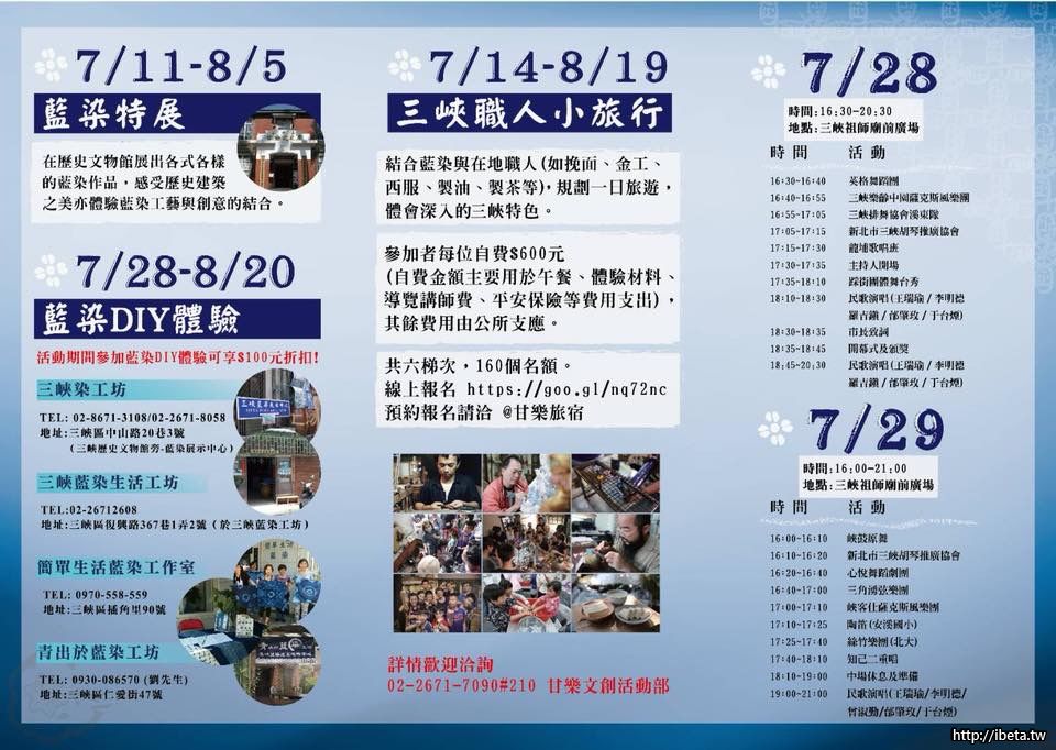 2018三峽藍染節,體驗在地文化,系列精彩活動歡迎您踴躍來參加唷。