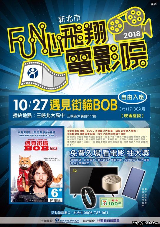 飛翔電影院遇見街貓BOB/北大高中10/27下午17:30入場,歡迎鄉親相招來看免費電影唷。《龍學里長周秀鳳關心您》