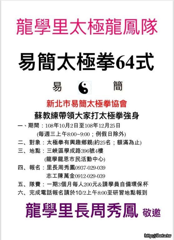 咱們來做運動,里長周秀鳳敬邀,歡迎鄉親踴躍報名參加,動動手、動動腳,一起做運動唷。《龍學里長周秀鳳 ...