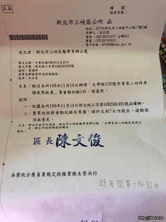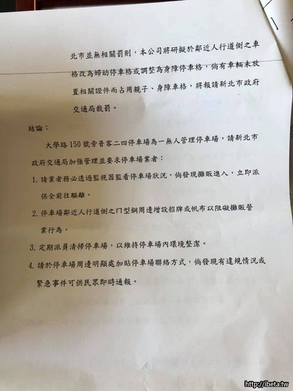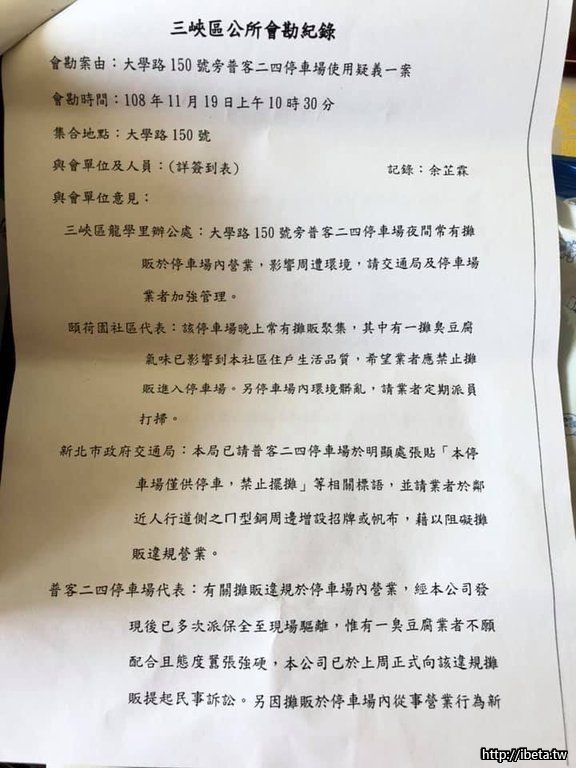 針對大學路頤荷園社區旁普客二四停車場,攤商違規擺攤影響社區居民生活品質問題,與三峽 ...