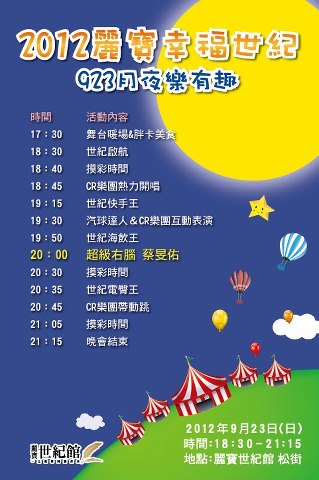 聽說當晚....我們世紀館的偶像巨星.....蔡旻佑.....還將親臨現場舉辦.....北部地區首發之新歌發表會喔!!