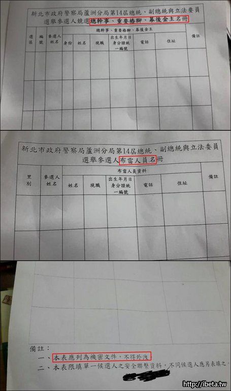 今天傍晚,林淑芬Po出三張新北市政府警察局蘆洲分局「第14屆總統、副總統、立法委員選舉參選人的『競選總幹 ...