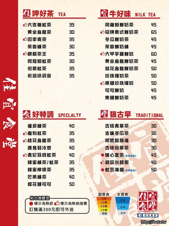 我們有酸梅湯($40)、杏仁茶、紅豆湯和花生湯($50),冷熱皆有,也可搭配小湯圓或油條食用,酸梅湯和杏仁茶亦有瓶裝,純手工慢火熬煮。北大特區內買四份即可外送。