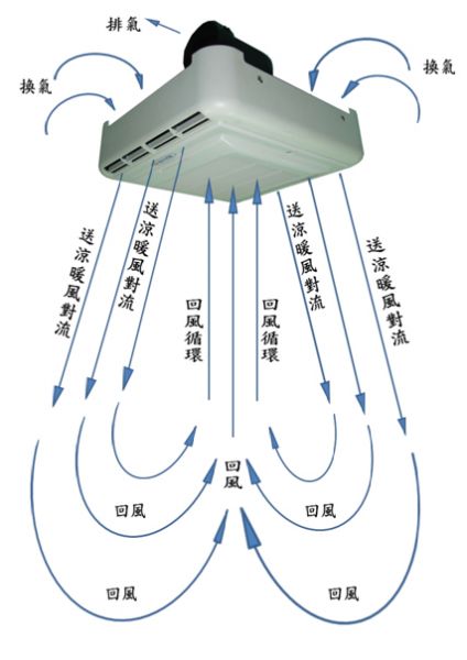 暖風/乾燥 浴室進 -> 電熱模組 -> 浴室出 (水氣沒排出 囧!!!)