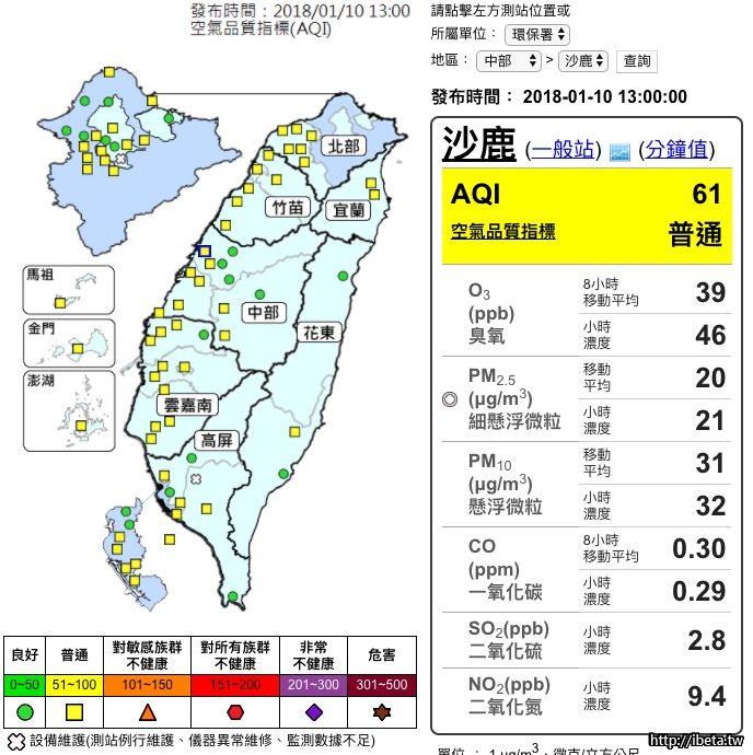 環保署卻於2016年12月改制推出空氣品質指標AQI ,紫色等級的PM2.5濃度標準,一口氣從大於70微克/立方公尺提高到大於150微克/立方公尺。