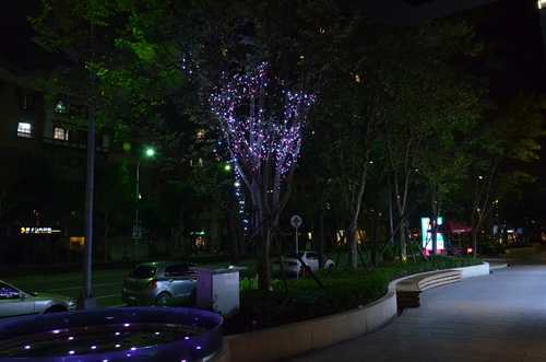可否請物管將中庭及大門前樹上的霓虹燈拆除?