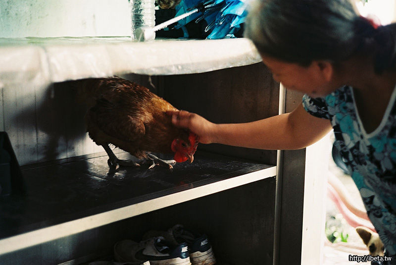 師母手上抱的雞,是他們家的一份子,
