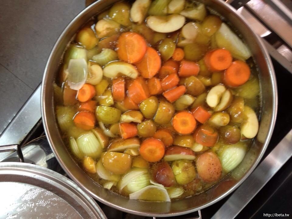 用十種蔬果和帶筋肉的牛骨熬煮六至八個小時的高湯作為湯底,