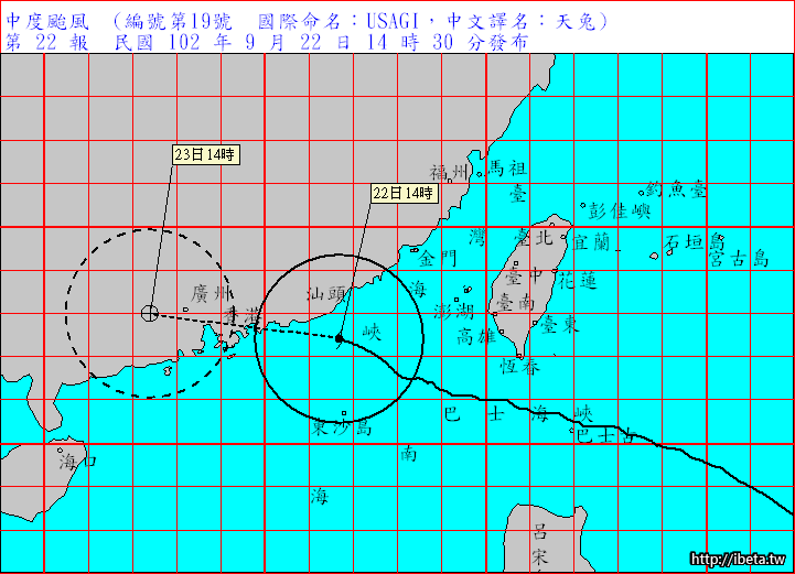 颱 風 強 度 及 編 號:中度颱風,編號第19號(國際命名:USAGI,中文譯名:天兔)