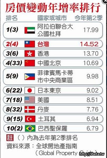 http://www.appledaily.com.tw/appledaily/article/headline/20130924/35315651/%E5%8F%B0Q2%E6%88%BF%E5%83%B9%E6%BC%B2%E5%B9%85%E5%85%A8%E7%90%83%E7%AC%AC2