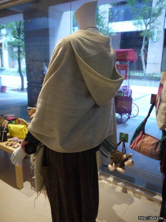(背面)胸前有一顆木釦,後面還有帽子,簡單大方又可愛的設計,穿上它就有溫暖的感覺~
