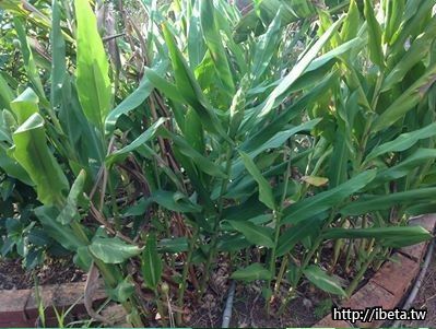 《上圖》野薑花植物一欉種在螺旋花圃一角。