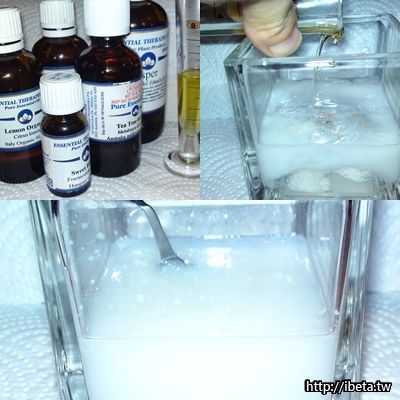 材料: 茶樹精油+薄荷精油+甜茴香精油+百里香精油+精油調和劑+自來白開水