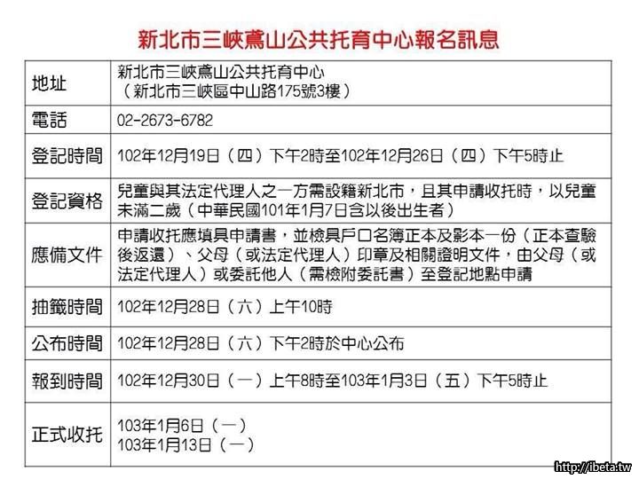 全文網址: 新北三峽首家公托中心開幕 | 大台北 | 地方新聞 | 聯合新聞網 http://udn.com/NEWS/DOMESTIC/DOM2/8371118.shtml#ixzz2nyJ0ebTW