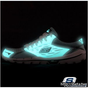 2. 夜晚發光系列 NIGHT OWL: 鞋面運用先進的夜光奈米技術 -- 光激螢光科技,Skechers夜鷹系列,只要放置在陽光或是日光燈下就能發光。就像是充電一樣,照得越久,發光的強度和時間就越強/長。加上廣受跑者喜愛,使用專利避震緩衝材質的 Resalyte Gorun 2 鞋底,輕量,曲折性又高。這是一雙喜愛夜跑,或是夜間工作者不可缺少的運動鞋。