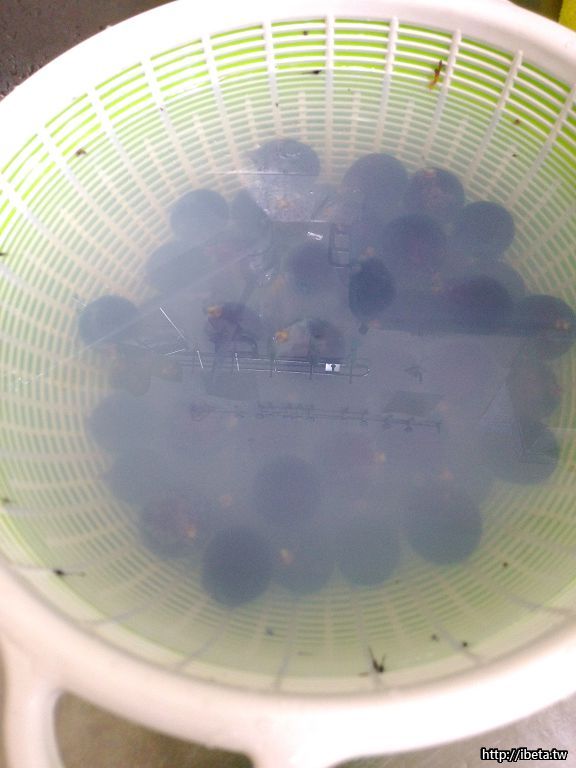 我們使用的蔬果清潔劑是知名的國際品牌,只要在水槽裡滴上兩三滴,水果泡在水中輕輕攪動,淨置三到五分鐘,水就會呈現混濁的白色,農藥越多越混濁。把混濁的水倒掉之後,再用清水沖洗一兩次就可以把農藥完全洗掉了。而那混濁的水倒掉之後並不會污染水源,因為農藥已經被中和分解掉了,是無毒的污水,這就是這產品強調的環保效果。