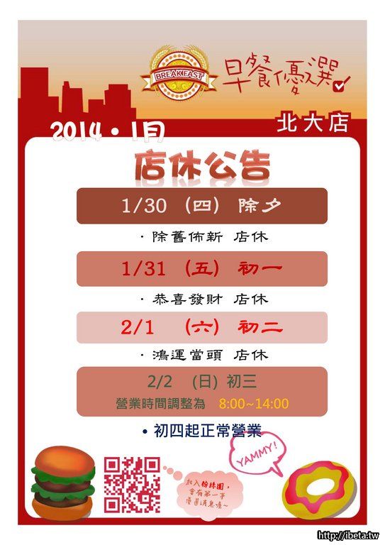 【早餐優選北大店】農曆年店休公告