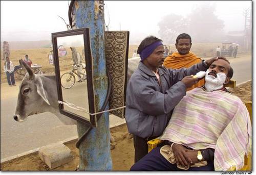 在大樹下, 在路邊, 經常可以看到理髮的小攤子, 別說理髮, 連拔牙的都有!