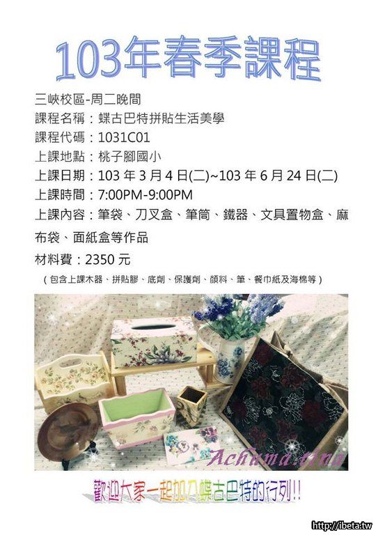 課程代碼: 1031C01蝶谷巴特拼貼生活美學