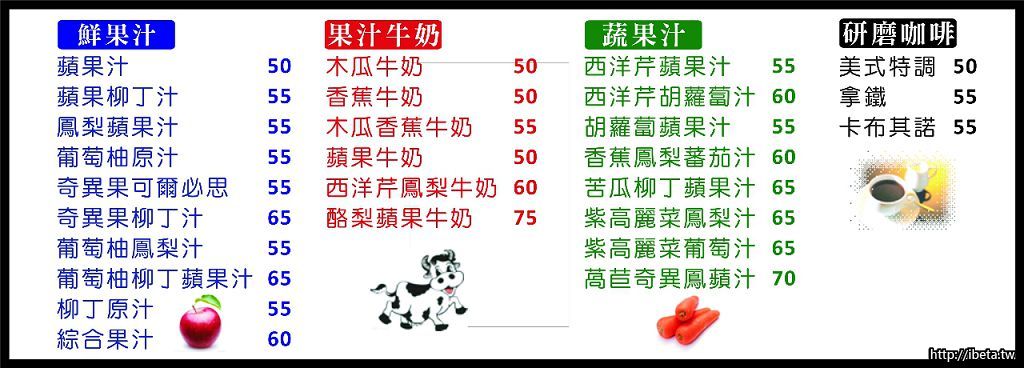 各式果汁買10送1(任選),亦可參加集點活動(1杯1點,10點送1杯任選)