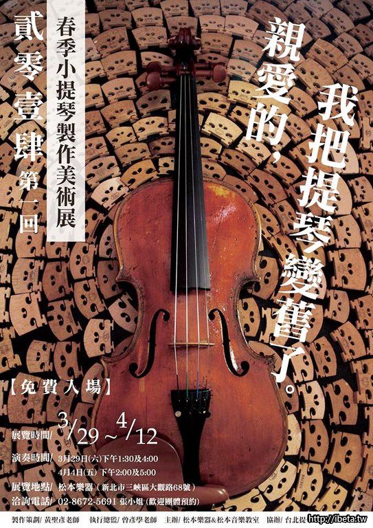 演奏時間(共有4個場次):3月29日(六)下午1:30及4:00、