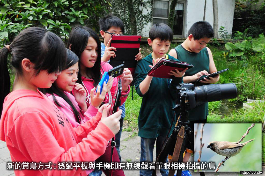 現在只要拿著平板或是相機在長鏡頭的相機或是攝影機旁就可以看到即時鳥的影像(最多可以分享給10台載具)