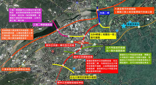 以上是參考之前畫的「樹林交流道路網規劃圖」(詳情請參考「建設追蹤」專區-[交通] 國道3號增設樹林交流道,網址: