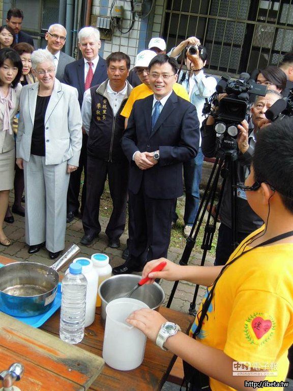 「省」政府新聞處長王靖惇及葉朗敬則以英語解說「水資源」、「能源」及「生物多樣性」三面向生態學校申請並獲得綠旗肯定的過程,最後由該校「環保局長」李宇恆代表贈送紀念品。麥卡錫頻頻豎起大拇指稱許,還表示要珍藏小朋友贈送的特製肥皂。