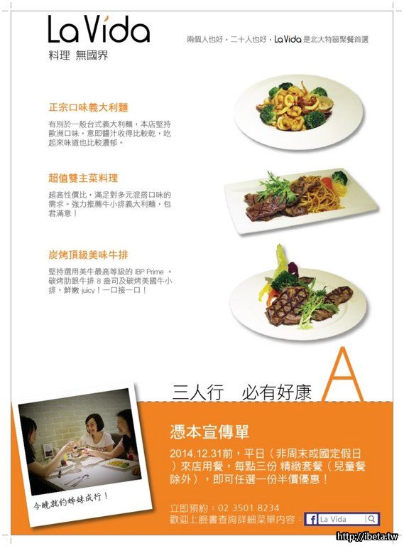 誠摯邀請您來La Vida 料理 無國界 享受美食 用心生活