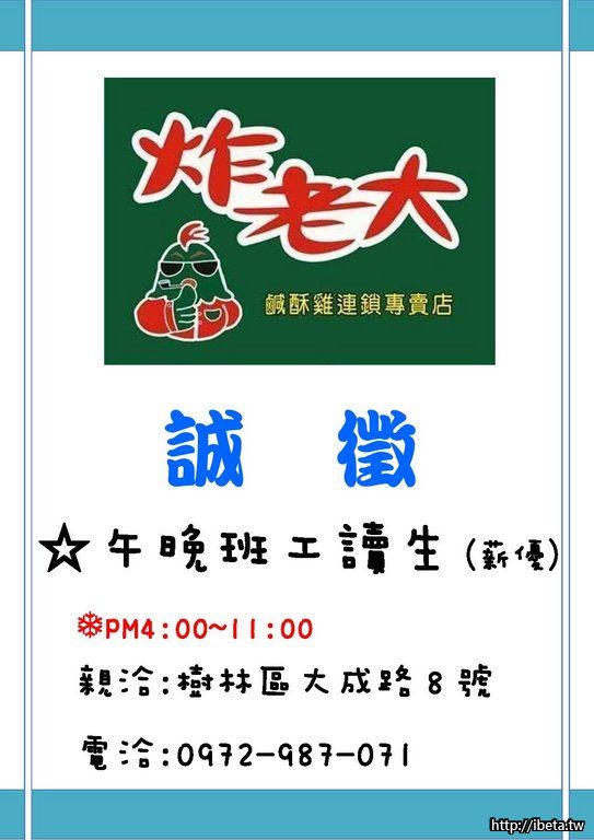 炸老大鹹酥雞~誠徵午/晚班工讀生