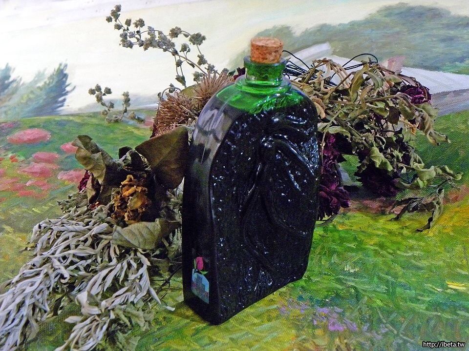 上圖-等麻油涼了,把艾草撈掉,並用塑膠濾桶將麻油濾乾淨,最後再用紗布濾好才裝入大玻璃瓶內,有需要時再分裝小瓶,這樣就完成囉。