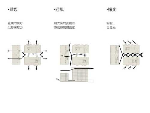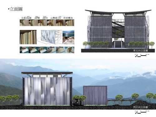 (二)綜合介紹大樓平面、立面、剖面及透視圖。