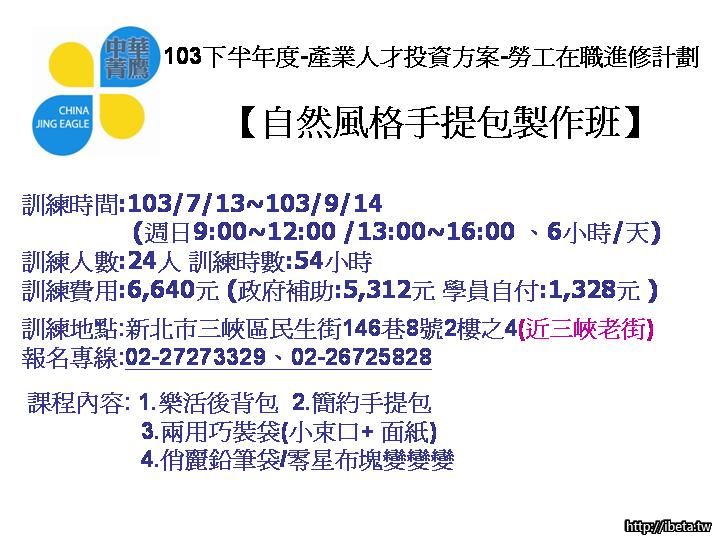 例如:自然風格手提包製作班