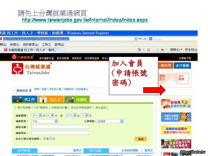 1. [backcolor=Yellow]請先上台灣就業通網頁[/backcolor] http://www.taiwanjobs.gov.tw/Internet/index/index.aspx