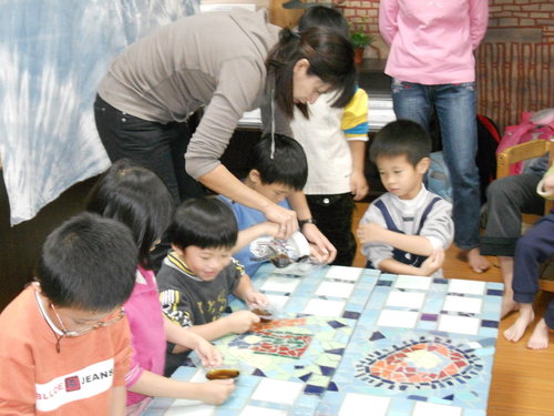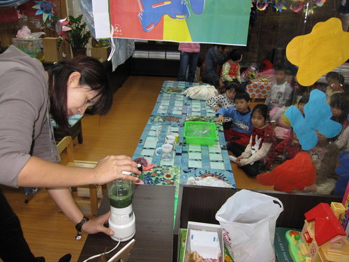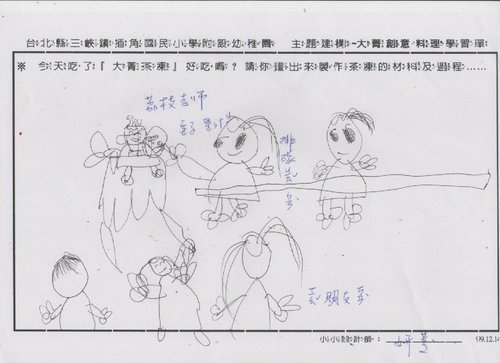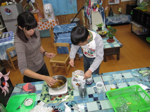 放入大菁時,先讓小朋友聞聞看大菁的味道