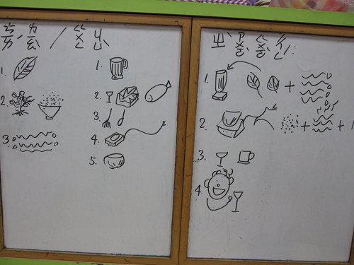 第ㄧ步驟:先將大菁植物用果汁機攪拌→取出大菁汁液