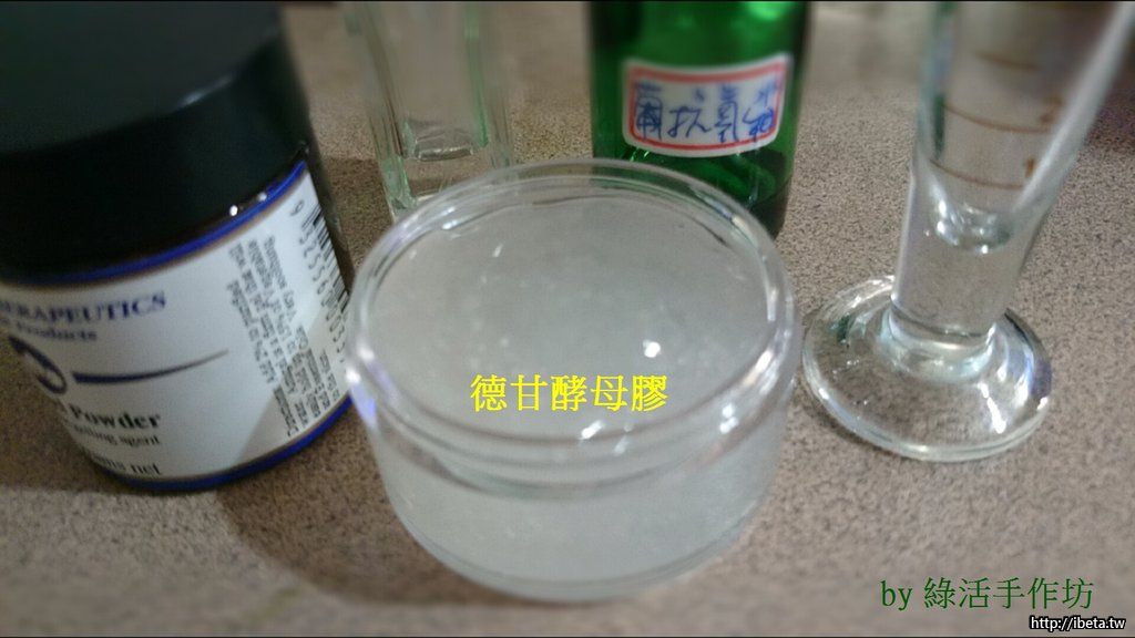 圖片示範的以德甘花水+2%酵母粉+8D葡萄柚籽抗菌製成的德甘酵母膠