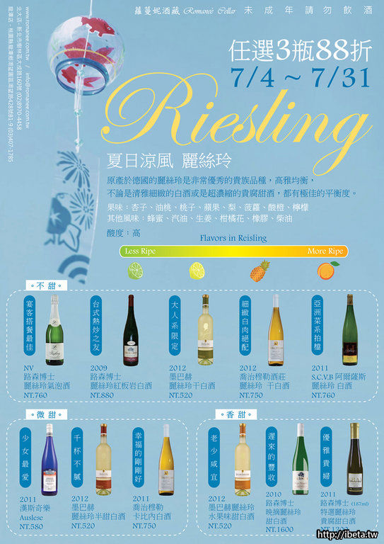 炎炎夏日,最適合來杯冰冰涼涼的麗絲玲白酒~
