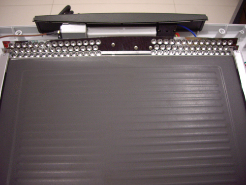 等等,電膜是沒有直接加熱物呀!那來的發光物呢?給他拆開來看看。上面是反光鋁片,正面是薄膜板