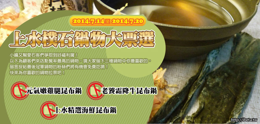 1. 在此則PO文中留言三項鍋物中你最喜歡的鍋物