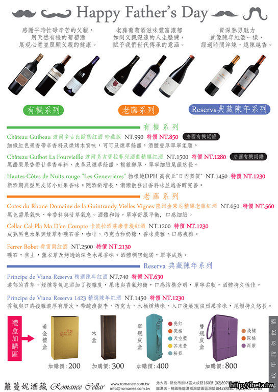 父親節~健康是最好的禮物!蘿蔓妮酒藏特價中~